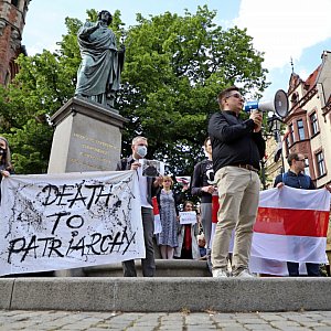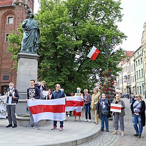 Wczoraj (środa) pod pomnikiem Mikołaja Kopernika odbył się kolejna już manifestacja solidarności z Białorusinami. Tym razem protestowano też przeciw działaniom policji - przypomnijmy, kilka dni temu mundurowi z Bydgoszczy pojawili się na proteście w Toruniu i spisywali wszystkich uczestników.
