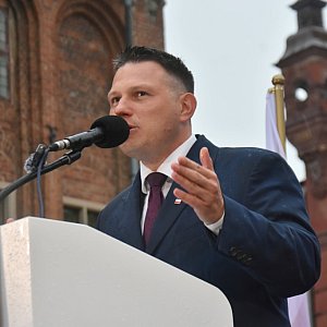 Wieczorem kandydat zawitał do Torunia. Choć nad miastem przeszła intensywna ulewa, nie odstraszyło to zwolenników Mentzena, którzy tłumnie zjawili się na spotkaniu. Na początek na scenie polityk pojawił się z żoną i dziećmi, dziękując im za wsparcie.