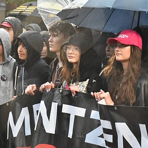 Mimo ulewy i napiętej atmosfery w mieście, pod sceną zebrały się tłumy – głównie młodych. Mentzen nie zrezygnował z wystąpienia w Toruniu.