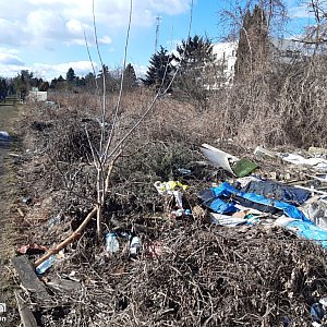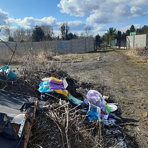 chciałem zgłosić temat dotyczący tego, jak działkowcy z Wiązowej dbają tylko o swoją zieleń, zaśmiecając teren zaraz za bramą.