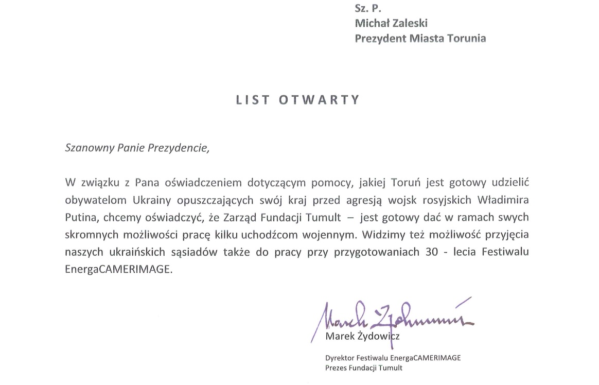 Pomocą dłoń wyciągnął też Marek Żydowicz - dyrektor Festiwalu EnergaCAMERIMAGE.