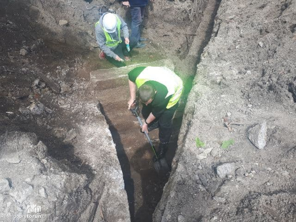 Toruń: niecodzienne znalezisko wykryte podczas prac ziemnych Ciekawe odkrycie na budowie przy al. św. Jana II. Podczas prac ziemnych odkryto tam schody tzw. Bramy Bydgoskiej. Znalezisko zinwentaryzowali archeolodzy. - Stare schody znajdują na wysokości dawnego przystanku autobusowego dla jadących z mostu drogowego. Są dobrze zachowane. Znamy przybliżoną lokalizację Bramy Bydgoskiej ze starych zdjęć, ale dzięki temu odkryciu mamy coraz więcej danych, gdzie dokładnie stała – mówi archeolog Leszek Kucharski z Muzeum Okręgowego, które sprawuje nadzór archeologiczny nad inwestycją. – To kolejne ważne odkrycie dla historii Torunia. Zostało obfotografowane i zinwentaryzowane. Czekamy na kolejne, bo niewykluczone, że podczas korytowania coś ciekawego zostanie odsłonięte. Prace na budowie idą pełną parą. Na jezdni wschodniej, pomiędzy Wałami gen. Sikorskiego a ul. Chopina, trwa korytowanie pod nową drogę i uzbrajanie terenu. Z kolei od strony jezdni zachodniej układany jest chodnik, a na pl. Artylerii Polskiej trwają przygotowania to tzw. Spawów zamykających na łukach rozjazdów na torowisku. W torowisku kładziony jest również beton nawierzchniowy. Schody tzw. Bramy Bydgoskiej to nie pierwszy relikt historyczny na tej budowie. Niemal od początku robotnicy trafiają na fragmenty dawnej zabudowy Torunia. Praktycznie zaraz po sfrezowaniu asfaltu na Wałach gen. Sikorskiego pojawiła się stara, bazaltowa kostka. Krótko później wyłoniły się zarysy XVI -wiecznych domów stojących niegdyś po południowej stronie ulicy Wałów, określanej przez historyków jako Zaułek Kołodziejski. Odkryto tam np. doskonale zachowaną posadzkę. Odkrycie zarysów domów pozwoliło na dokładniejsze określenie linii przebiegu Zaułka Kołodziejskiego. Na Wałach natrafiono także na nowsze relikty - pozostałości po Twierdzy Toruń. Znaleziono tam fragmenty najprawdopodobniej szopy , w której przechowywane były armaty. Pośrednio potwierdzają to kolejne znaleziska, tj. dwie kule armatnie. Także na Wałach gen. Sikorskiego odkryto pozostałości trzech niezależnych budowli. Był tu dom, który przed wiekami uległ spaleniu, tuż obok niego mur z późniejszego okresu, prawdopodobnie oporowy, który służył wzmocnieniu oraz kolejny mur. Mimo spalenia to, co z domu zostało, było doskonale zachowane, bez żadnych śladów ingerencji podczas prowadzonych później prac. To wspaniała sytuacja dla badaczy. I zdecydowanie rzadka w miastach, gdzie przecież często prowadzone są różnorakie roboty. Z kolei w ul. Chopina zostały odkryte bardzo grube mury zachodniego przyczółka Bramy Bydgoskiej, a także stary wodociąg z początków XX wieku. Co ciekawe, przez ponad sto lat nie uległ on jakiejkolwiek awarii. [ALERT]1588773851384[/ALERT]
