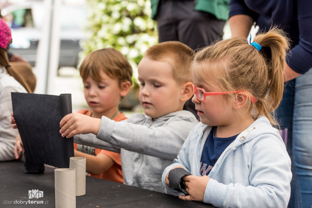 Miejskie Przedsiębiorstwo Oczyszczania w sobotę zaprosiło torunian na rodzinny festyn na Rynku Nowomiejskim. Na dzieci czekało mnóstwo atrakcji i konkursów m.in. na ekologiczne nakrycie głowy wykonane z odpadów. Uczestnicy mogli z bliska zobaczyć sprzęt, z którego na co dzień korzysta miejska spółka przy wywożeniu śmieci i porządkowaniu miasta. Fot. Tomasz Berent