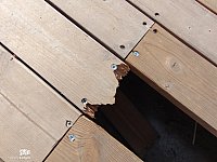 Słynny nowy pawilon na Bulwarze Filadelfijskim w Toruniu został po raz kolejny uszkodzony. Do usterki doszło w miejscu, gdzie niedawno przeprowadzono naprawę. Tym razem skala zniszczeń jest chyba jeszcze większa. [ALERT]1716885744913[/ALERT] Przypomnijmy, że poprzednio pawilon na Bulwarze Filadelfijskim został zniszczony przez 69-letniego kierowcę autokaru wycieczkowego. Kierowca, wykonując nieprawidłowy manewr omijania, najechał na pokrytą deskami górną część pawilonu, co spowodowało jego uszkodzenie. Sprawca tego wykroczenia został wtedy ukarany mandatem karnym. O kolejnej usterce informowaliśmy na portalu Dzień Dobry Toruń już w poniedziałek (27 maja). Po otrzymaniu informacji udaliśmy się na miejsce, aby sprawdzić szkody. Okazało się, że awaria miała miejsce na pierwszym z pawilonów na wysokości wlotu w Żeglarską, dokładnie w tym samym miejscu, w które na początku miesiąca wjechał autokar. Pęknięta była jedna z niedawno zamontowanych desek, a zniszczona część pawilonu nie została ogrodzona. A szkoda, bo być może wtedy pawilon nie zostałby doszczętnie zniszczony we wtorek. 28 maja, około godz. 9:30, na drewniany podest wjechał samochód dostawczy. [TIKTOK]https://www.tiktok.com/@ddtorun.pl/video/7373965160739769632?is_from_webapp=1&sender_device=pc&web_id=7369892726656370209[/TIKTOK] Jak informują nas Czytelnicy Dzień Dobry Toruń, tym razem skala zniszczeń jest dużo większa niż ta z weekendu. Kierowca wjechał na jedne z pierwszych desek, które pod ciężarem auta załamały się. Połamanych jest wiele elementów konstrukcyjnych. Pawilon zostanie zapewne zabezpieczony i częściowo wyłączony z użytkowania, tak jak na początku maja. Na miejscu jest straż miejska. Do sprawy wrócimy. Zobacz także: Toruń: 5000 zł nagrody za wskazanie chuligana! Budynek był świeżo po remoncie PILNE Toruń: Awaria tramwaju na środku skrzyżowania. Kierowcy utknęli [FOTO] Mężczyzna na czubku mostu Piłsudskiego. Wiemy, po co tam wszedł [FOTO]