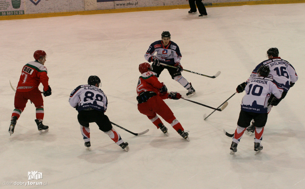 Polska Hokej Liga coraz bliżej. Toruńscy hokeiści w pierwszym podejściu o awans zwyciężyli z Zagłębiem Sosnowiec - 5:4. Fot. Agnieszka Bielecka